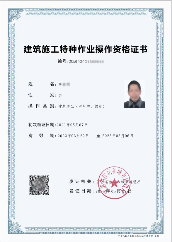 2、建筑企业特种作业人员考核(江苏住建厅颁发证书)